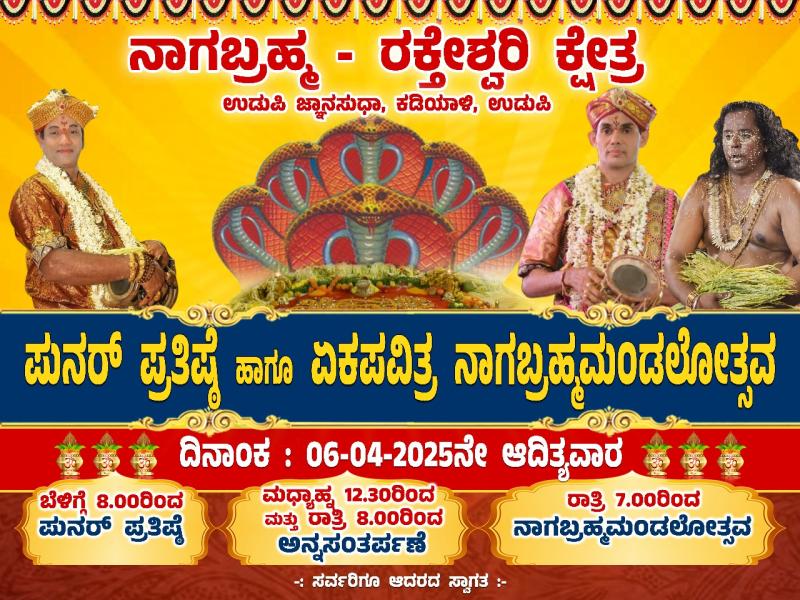ಏ. 5 ರಿಂದ 6ರ ವರೆಗೆ ಉಡುಪಿ ಜ್ಞಾನಸುಧಾ ನಾಗಬ್ರಹ್ಮ ರಕ್ತೇಶ್ವರಿ ಕ್ಷೇತ್ರದಲ್ಲಿ ಪುನರ್‌ ಪ್ರತಿಷ್ಠೆ -ಏಕ ಪವಿತ್ರ ನಾಗಬ್ರಹ್ಮಮಂಡಲೋತ್ಸವ