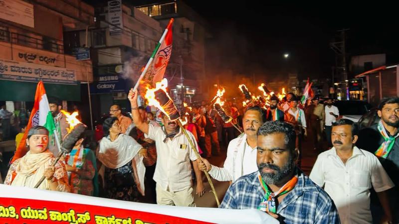 ಯುವ ಕಾಂಗ್ರೆಸ್ ಹಾಗೂ ಕಾರ್ಕಳ ಬ್ಲಾಕ್ ಕಾಂಗ್ರೆಸ್ ವತಿಯಿಂದ ಪಂಜಿನ ಮೆರವಣಿಗೆ ಹಾಗೂ ಪ್ರತಿಭಟನಾ ಸಭೆ
